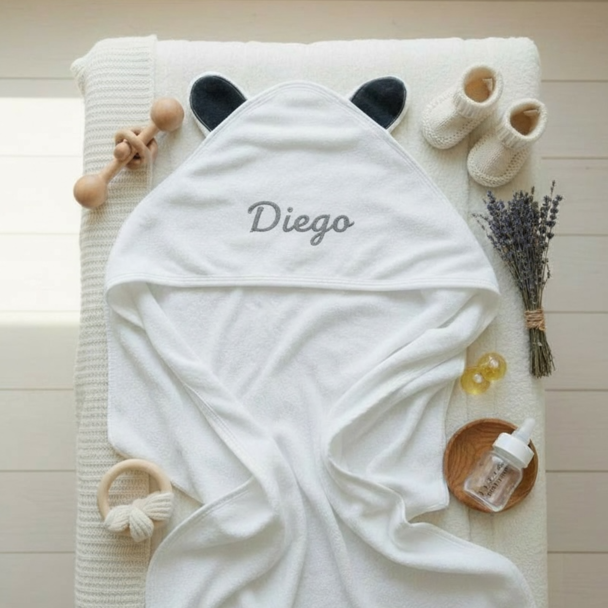 🚚 Envío nacional: $185 MXN✨ Personalización incluida sin costo Toalla de baño para bebé elaborada con bambú orgánico, suave, absorbente y delicada con... Leer más